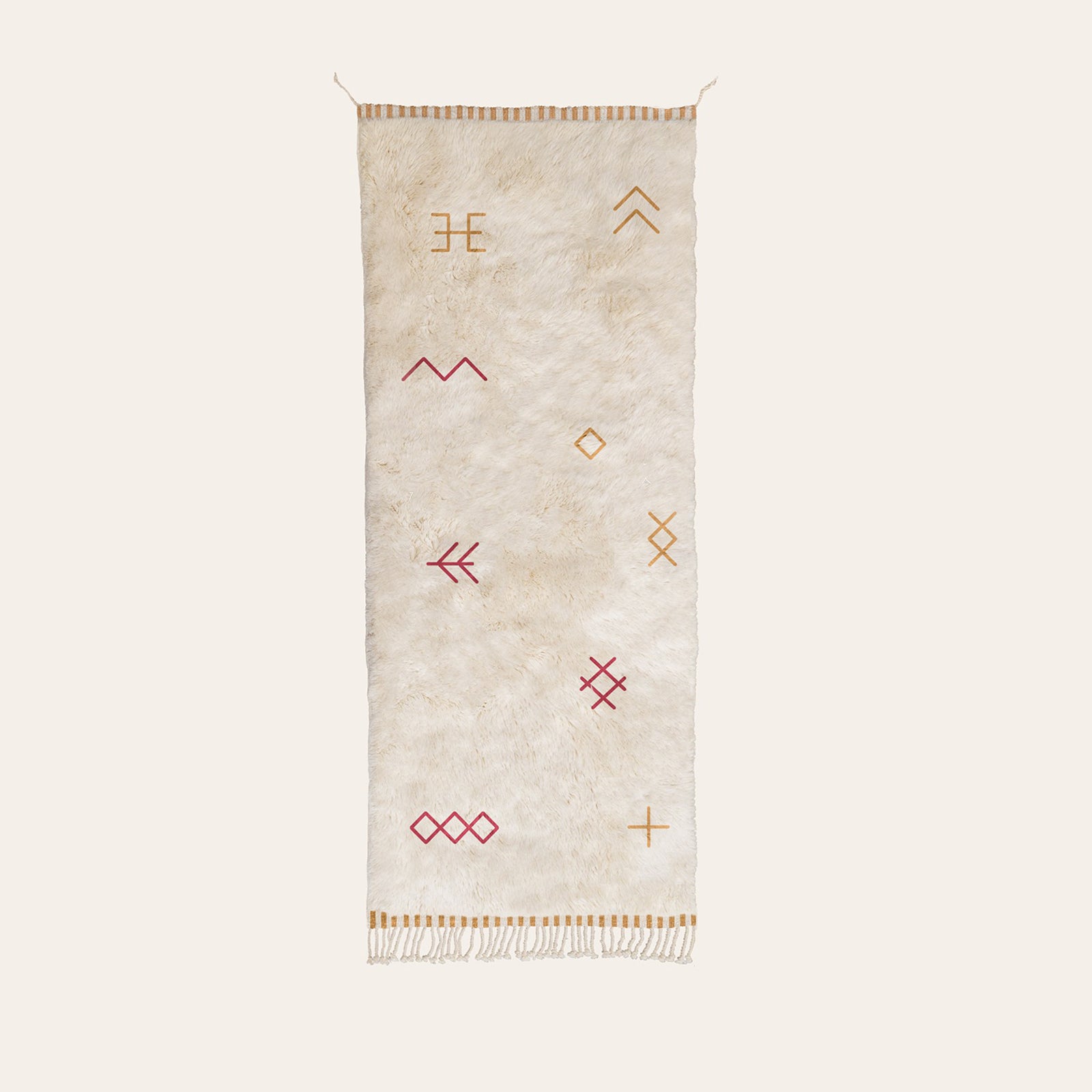 Azul, vernoemd naar het Amazigh-woord voor hallo, verwelkomt je thuis met iconische Berberse symboliek en een eigentijdse ziel. Gedurfd maar zacht, modern en toch tijdloos. De symbolen zweven subtiel over het oppervlak als een echo van eeuwenoude gedachten en herinneringen.