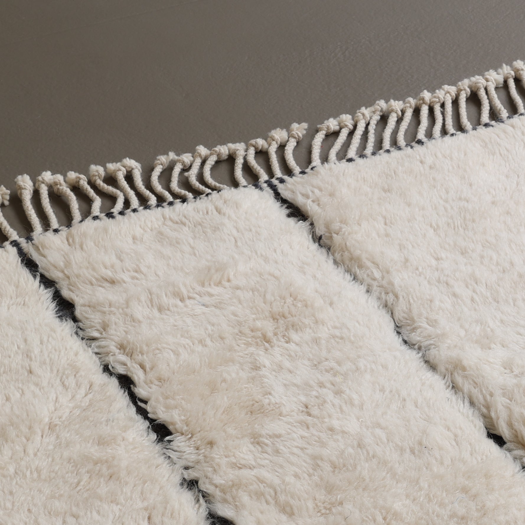 Franjes zijn een kenmerkend detail van Berberse tapijten en worden meestal aan één uiteinde van het kleed gevlochten. Heb je liever een strakke afwerking zonder franjes? Geen enkel probleem. Wij maken ook vloerkleden zonder franjes.