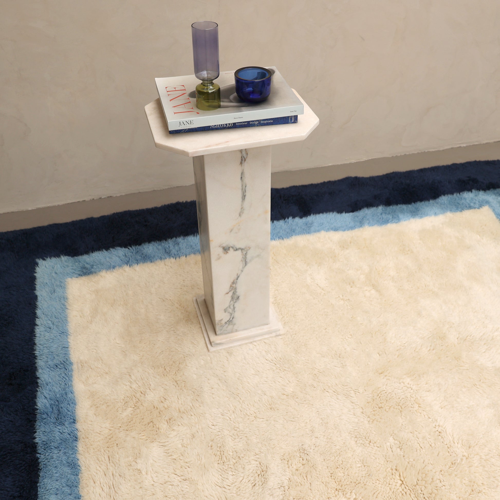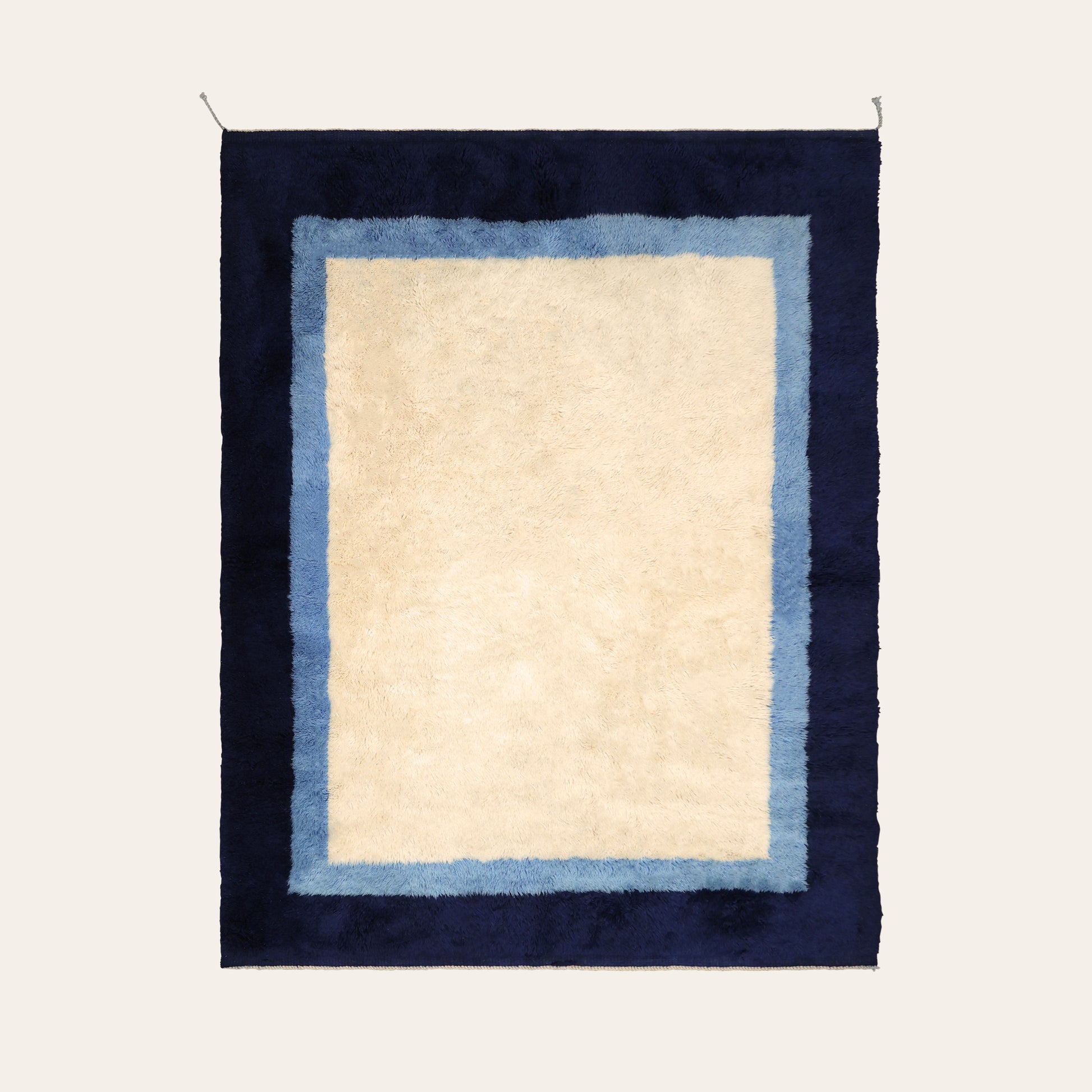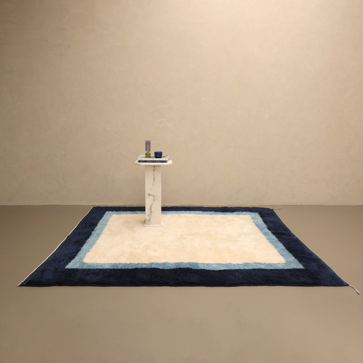 Eenvoudige lijnen, krachtige kleuren en een zachte textuur. Frame No. 1 brengt de essentie van modern design naar de vloer. Het crèmekleurige midden en de gelaagde rand zorgen voor een strak, grafisch geheel dat zowel subtiel als opvallend is. Deze Blauwe variant combineert de kleuren Hemels- en Marineblauw.