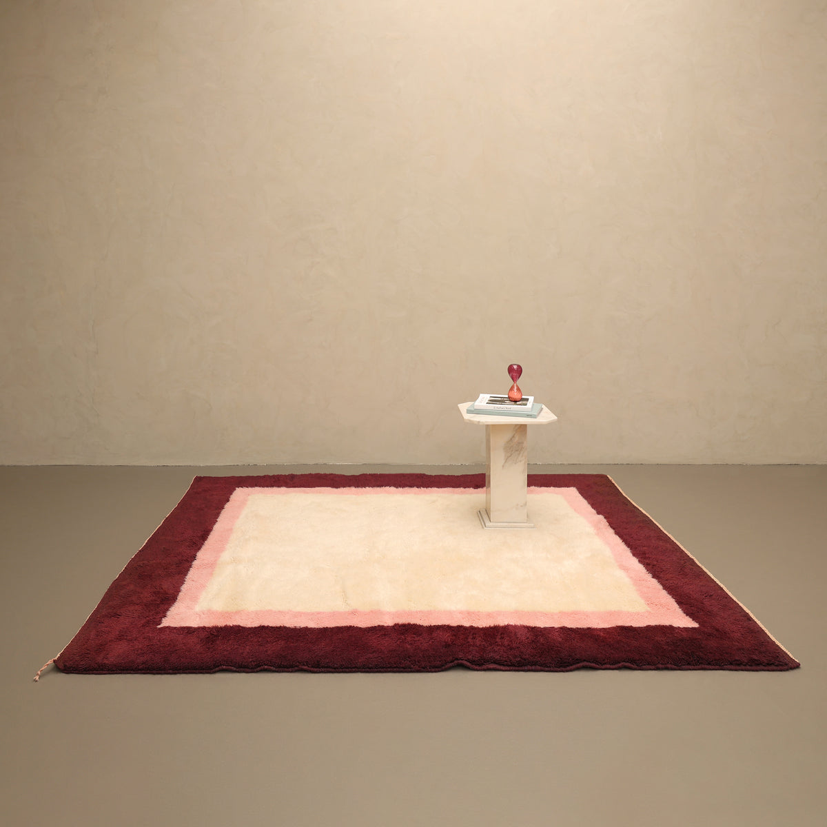 Eenvoudige lijnen, krachtige kleuren en een zachte textuur. Frame No. 1 brengt de essentie van modern design naar de vloer. Het crèmekleurige midden en de gelaagde rand zorgen voor een strak, grafisch geheel dat zowel subtiel als opvallend is. Deze Roze variant combineert de kleuren Blush en Crimson.