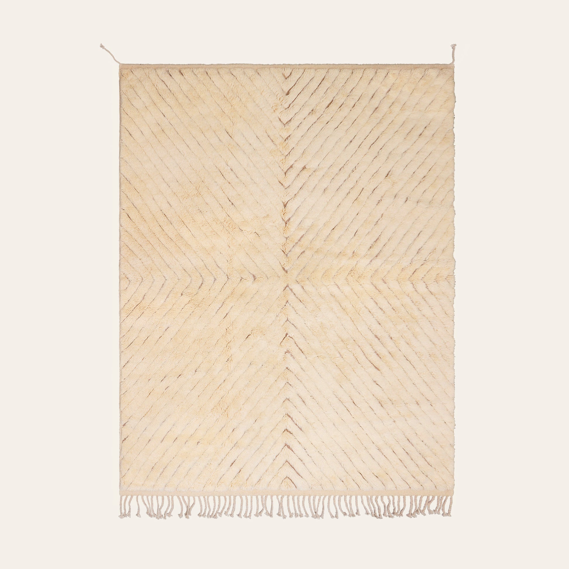 Marwa is een uitzonderlijk vloerkleed dat het alledaagse een vleugje zachtheid en romantiek geeft. Haar natuurlijke wollen pool en chevron-patroon komen samen op een taupekleurige basis, waar ze een sterachtig motief vormen. Gemaakt van pure schapenwol, straalt Marwa met haar fluwelige textuur ongeëvenaard comfort en rust uit.