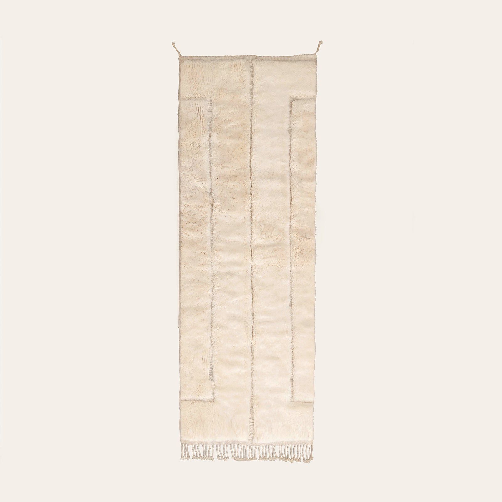In dit tapijt komen gespiegelde helften samen om de verbinding tussen verleden en toekomst te eren. Het symmetrische ontwerp laat zien hoe twee werelden duidelijk gescheiden kunnen zijn, maar nooit los van elkaar staan. Het hoog-laag patroon in het zijdezachte wol geeft het tapijt een uniek ontwerp en gevoel. Hiermee is het tapijt niet alleen betekenisvol, maar ook nog eens een wolkachtig zacht stukje kunst voor op de vloer.