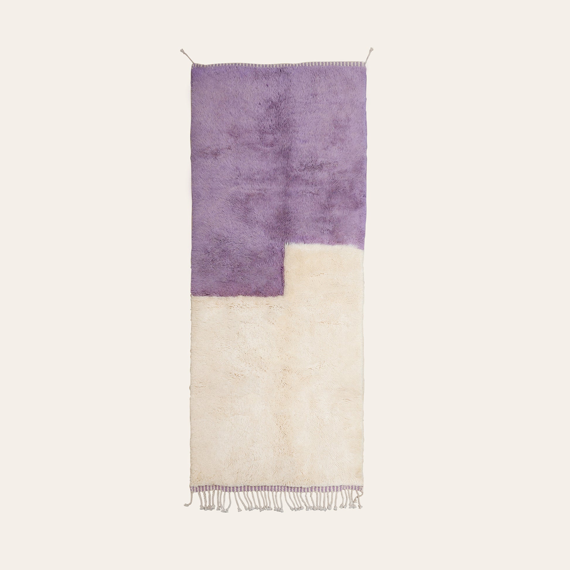 Geef je interieur een nieuwe charme met dit prachtige half-half Berberse tapijt, waarin zacht lila paars en natuurlijke crèmekleurige wol zorgen voor een opvallend maar harmonieus effect. Dit vloerkleed is met de hand geknoopt door getalenteerde ambachtslieden om een moderne sfeer in je ruimte te brengen: overdag vangt het lila paars licht prachtig op, terwijl de rijke paarse tint 's avonds verdiept voor een knusse en verfijnde uitstraling. Een veelzijdig meesterwerk dat je interieur op elk moment van de dag transformeert.